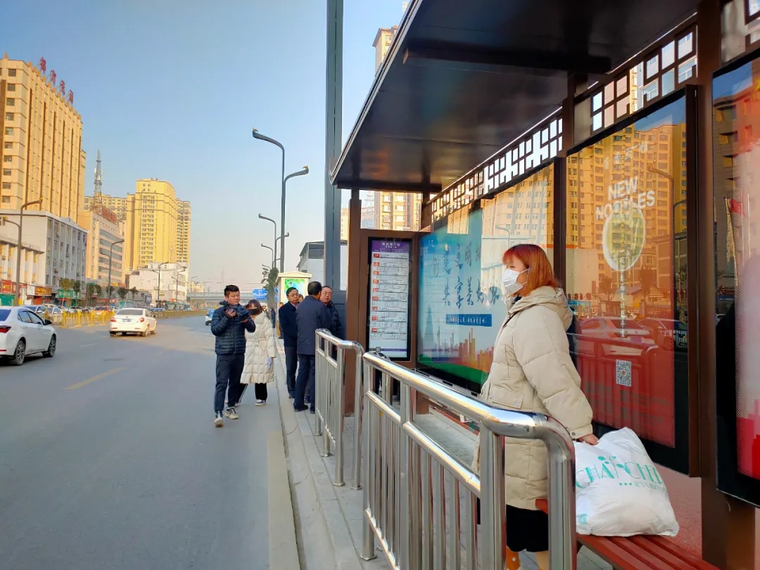 市人大常委會主任安雅文現(xiàn)場視察,劉忠森代表提出的《關(guān)于規(guī)范公交站牌公交站臺建設(shè)的建議》重點建議辦理情況。