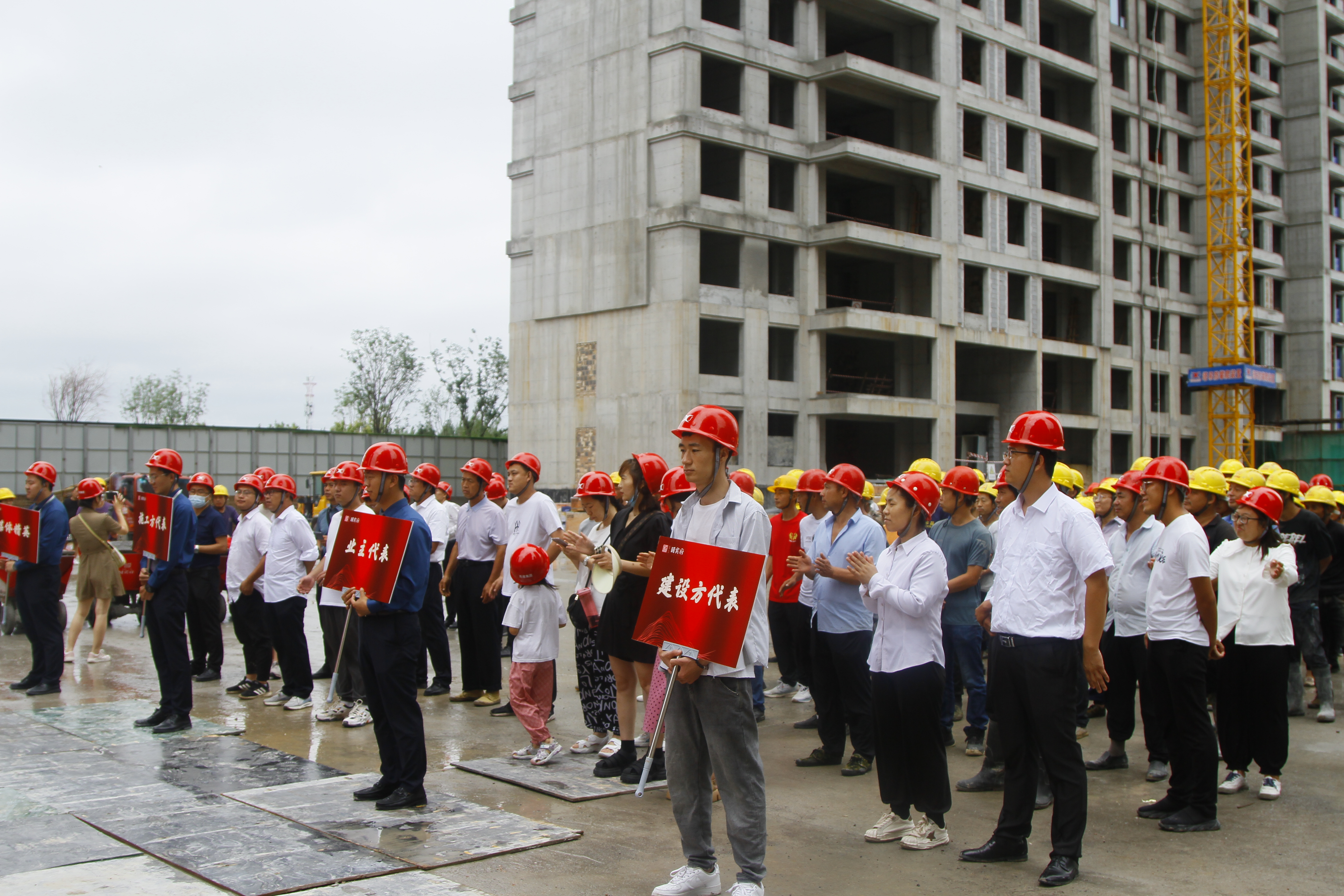 7月16號,西建·天茂國賓府的工地上塔吊聳立、人頭攢動,社會各界人士齊聚這里,熱烈慶祝西建·天茂國賓府10#、11#、12#、17#號樓喜封金頂,標志著西建·天茂國賓府一期樓棟基本全部封頂!此次活動在7月16號上午正式開始,除活動工作人員外,特邀農民工兄弟、業主代表、媒體精英、建設方代表等嘉賓蒞臨活動現場共享喜悅。