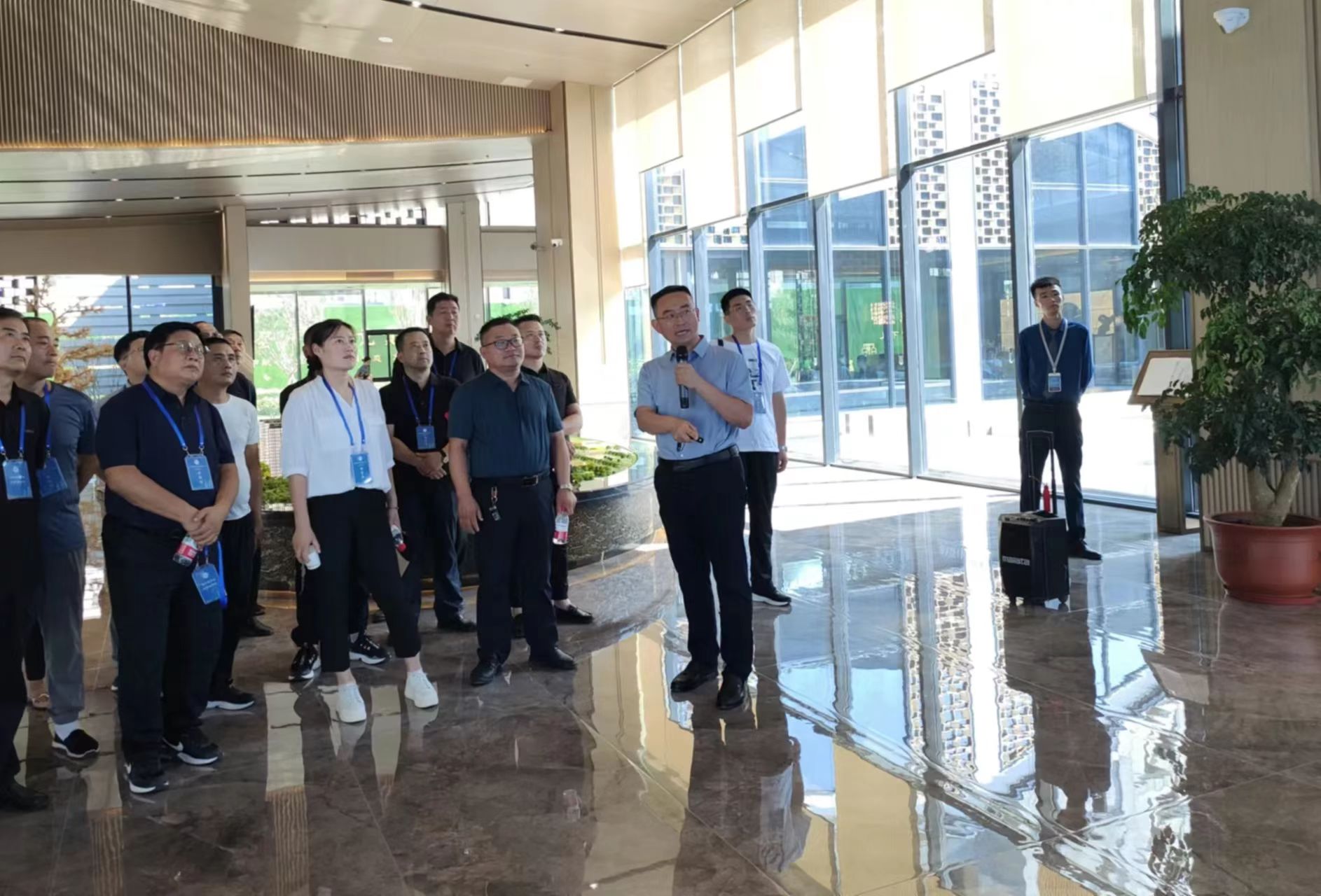 在芮城,臨猗縣新聯會一行人參觀了西建集團禹王臺太空艙項目。